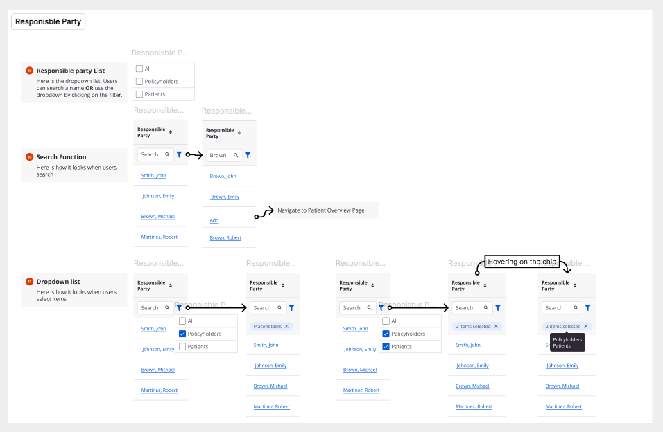 Since this was the first implementation of a highly customizable table component, the design handoff was delivered with detailed specifications to cover all interaction states, edge cases, and behavioral rules. To ensure full alignment, I conducted a walkthrough of the documentation with the development team, clarifying design decisions and expected behaviors.