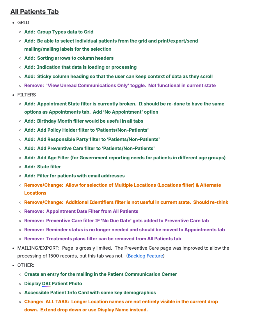 The Patient Management page(s) need to be updated to Angular, aligning with our MFE strategy. The current pages are confusing to users, riddled with bugs, and a steady source of customer impediments. The pages are also hindered by performance issues and limitations in both bringing back results and processing letters & postcards.