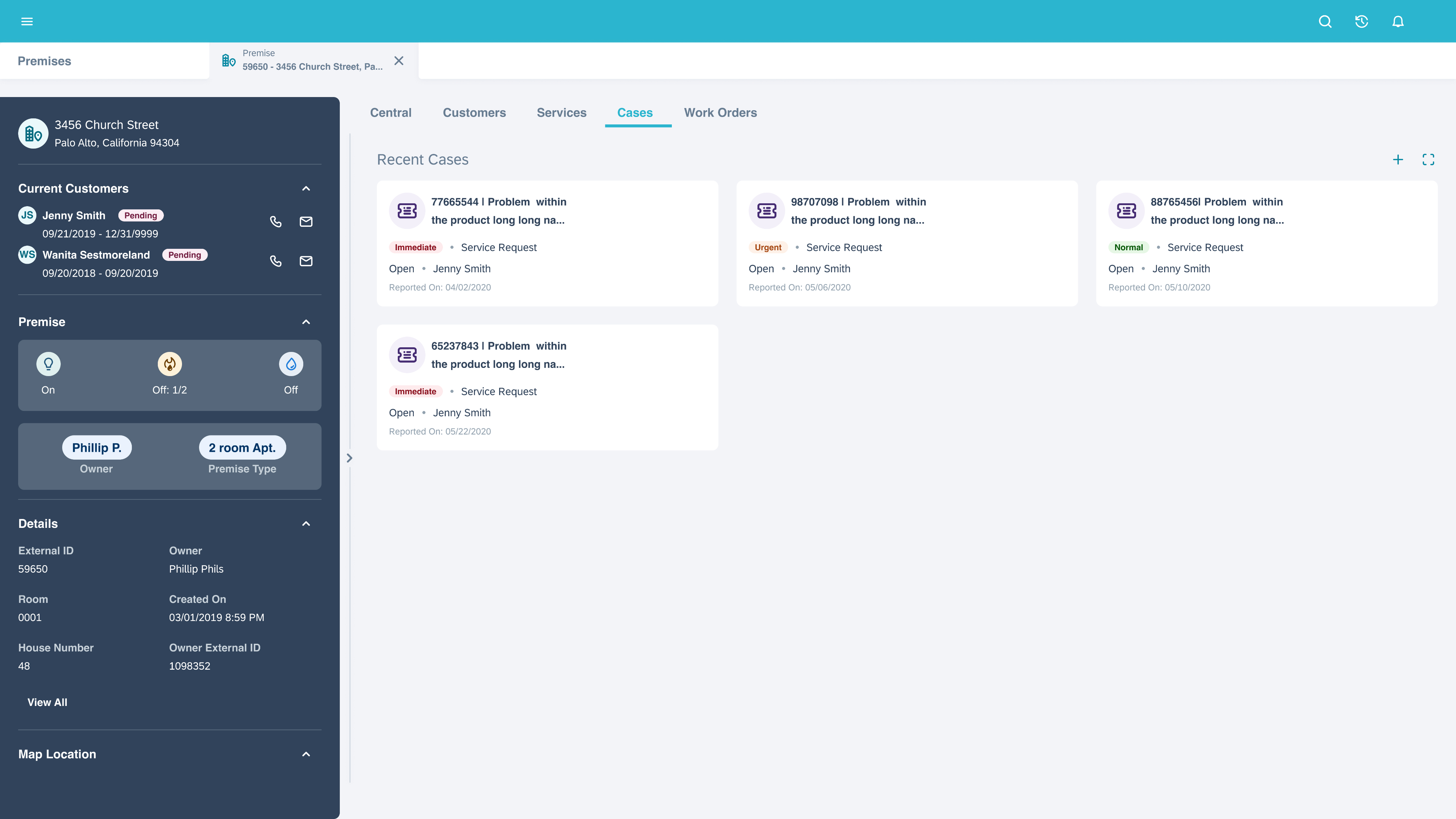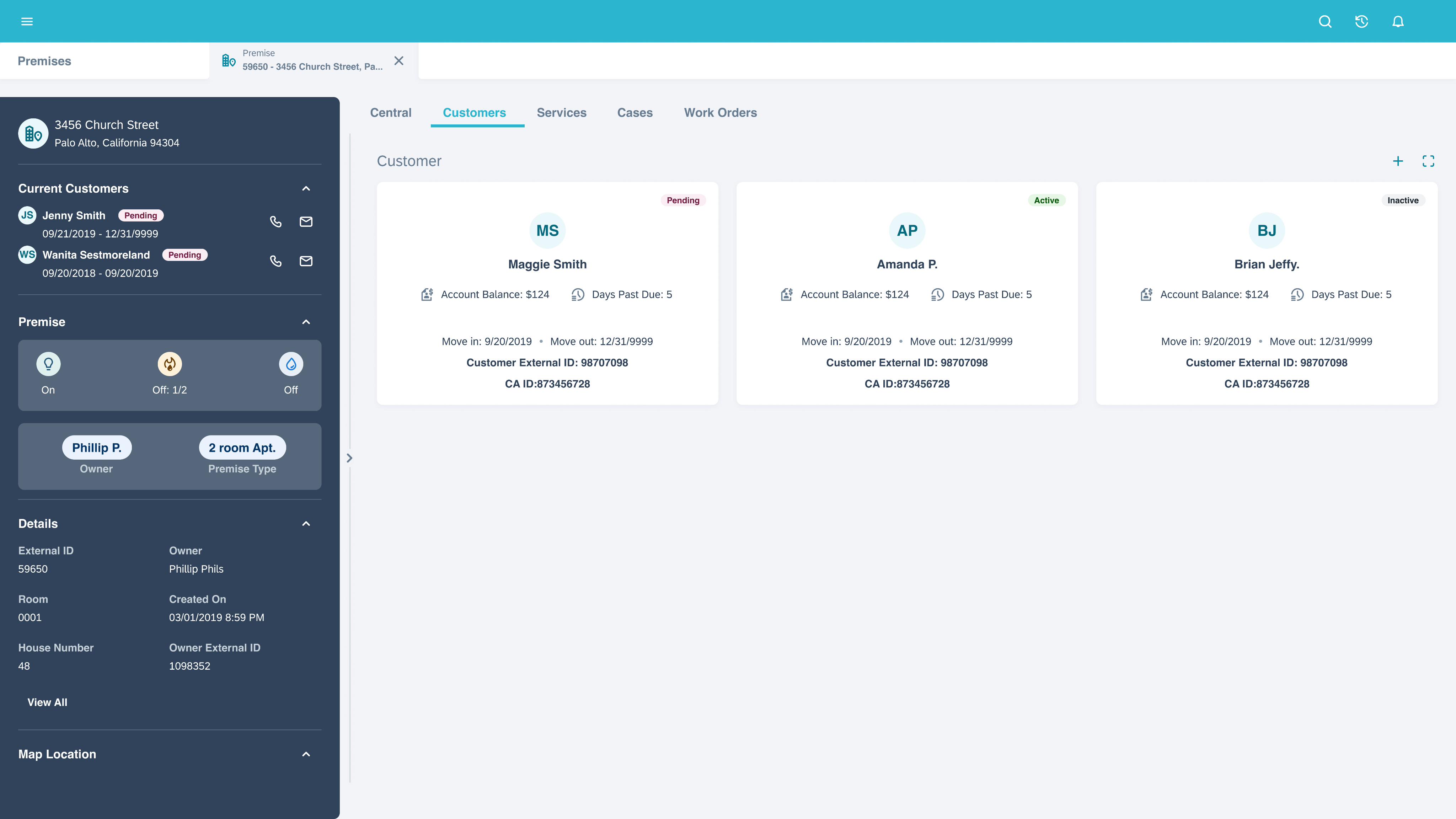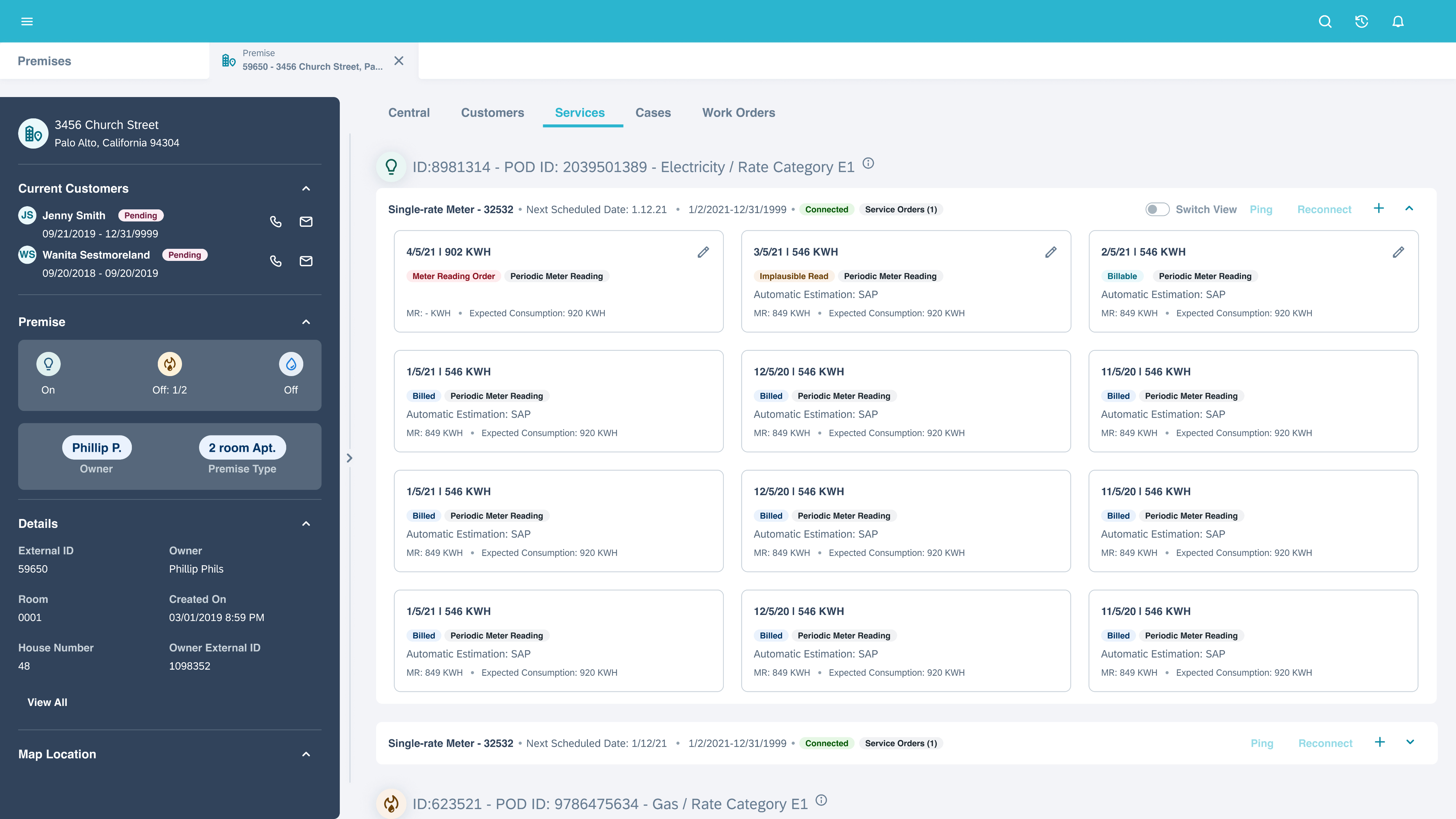 Within the Central Dashboard, users easily access pertinent customer information. Service cards streamline identifying errors and meter problems, optimizing time efficiency.